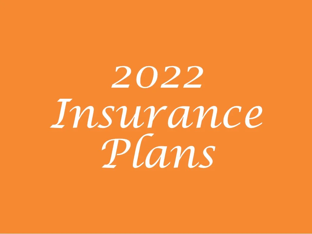 Blue background with white text reading "2023 Insurance Plans." Orange background with white text reading '2022 Insurance Plans'.